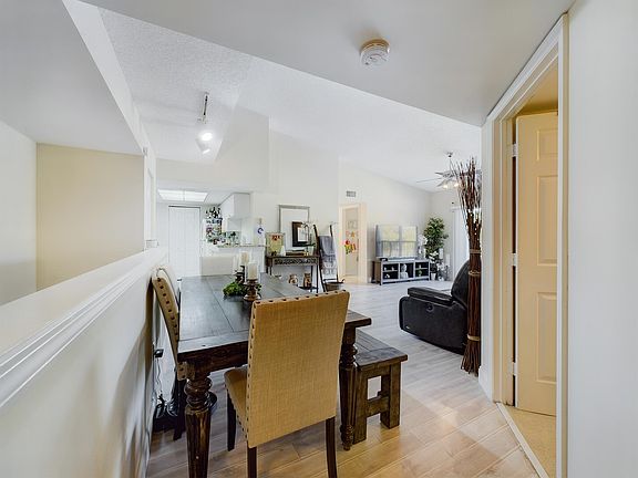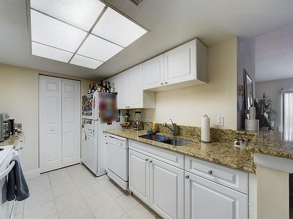 Upgraded corner unit in a gated community with an attached garage. With over 1250 square feet of living area and vaulted ceilings, this unit has a split floor plan, all new wood floors in the living area granite countertops, walk-in closets and washer and dryer. Community offers 2 pools, tennis court, fitness center, basketball court and walking path around lake. Centrally located to major highways near the turnpike, equestrian facilities, shopping, dining and near the mall at Wellington Green.