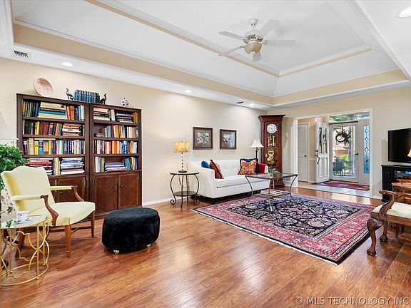 This beautiful, split floor plan home is located on a corner lot with mature trees and beautiful landscaping! The covered patio is a peaceful and private outdoor living space, with access from the home and the garage. The storage room attached to the house is conveniently located on the patio and has double doors for easy access. The 3-car garage includes a ½ bath, and a wall separating the 3rd car space. The formal dining room is very spacious and elegant! The kitchen features a pocket door to the formal dining room, granite counter tops, a pantry with pull out drawers and built-in microwave, under cabinet lighting, and an informal eating area. The primary suite is very spacious, enough room for king size bed and an office or extra living space! The primary bath includes abundant storage, double sinks, a separate shower, and a custom stain glass window above the jetted tub. Each bedroom features a walk-in closet and plenty of space! Roof and gutters replaced in 2019. Interior professional paint 2023. New hot water tank, and vent hood 2024.