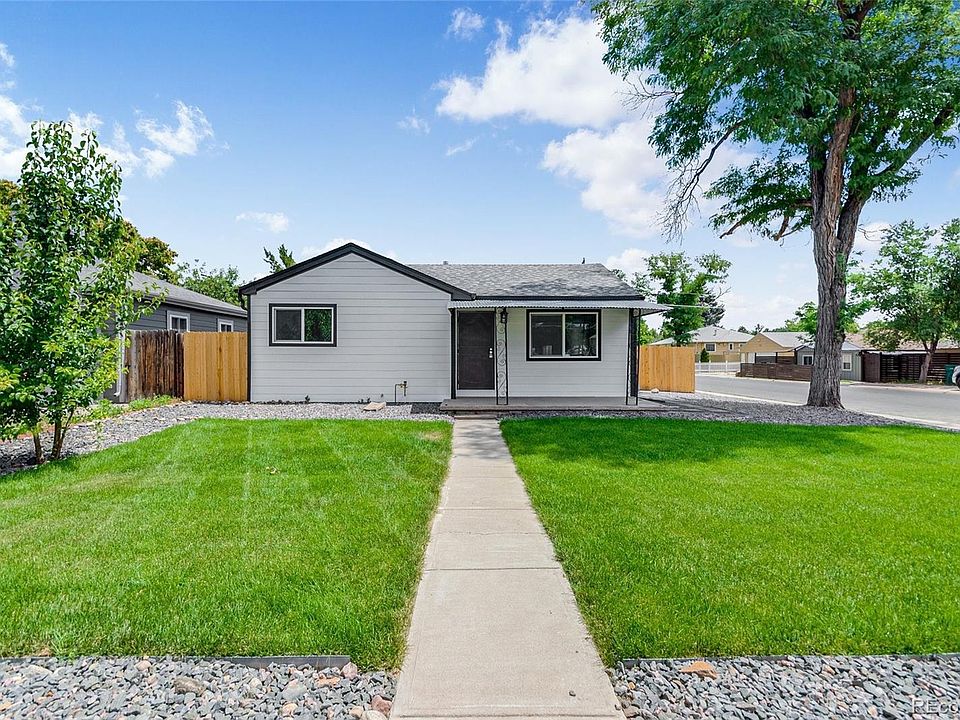 Welcome home! Completely remodeled turn-key home in Aurora. Upon entering the home you are greeted by a large open floor plan with plenty of natural light. The kitchen features stainless steel appliances, granite counter tops as well as a space for a dining table. There is potential to add a second bathroom as the home is already plumbed for it. The home has been completely renovated to include, interior/exterior paint,security doors, fixtures, flooring, 80% plumbing, new furnace, new roof, New A/C, and water heater. All appliances included as well as the washer and dryer. The back yard is perfect for entertaining featuring a HUGE fully fenced yard on a corner lot. There is also a large covered back porch, 1 car garage and space for an RV. Sqft is likely inaccurate as the master bedroom was a closed in addition. Nestled in a family friendly neighborhood close to historic old town Aurora, parks, trails, entertainment, dining, Golf, as well as Stanley market place. Also nearby are Fitzsimmons medical, Lowry, Central Park, VA Hospital, Children's Hospital, and light rail.