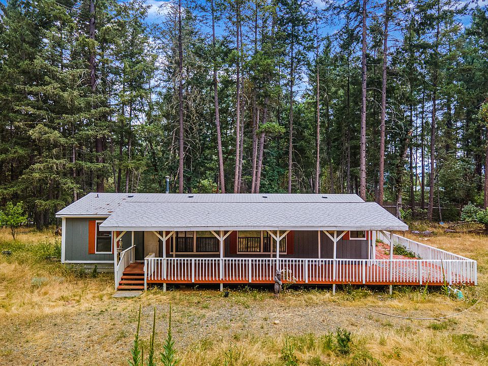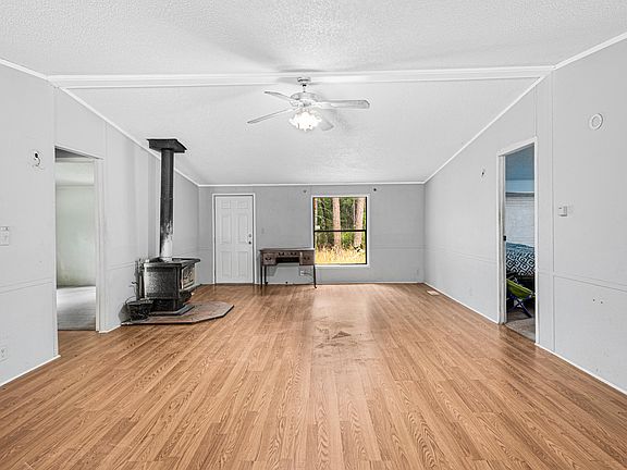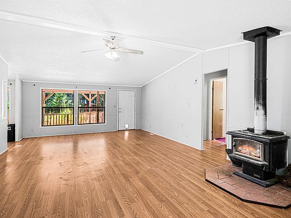 This home features an open floor plan and an abundance of storage on 6.95 flat acres. The oversized kitchen features a tile backsplash, many cabinets and large amount of counter space, a bright and cheerful breakfast bar, a dining area, and a large living room. This floor plan offers a private, primary suite with tub shower combo and built-in vanity. The large covered deck is the perfect space for outside living on this gates and secluded 6.95 acres of paradise. Surrounded by trees and wildlife, this property has the potential for a shop, DLS, and vegetable garden. Any buyers interested in the property should investigate any and all intended uses. Information is deemed reliable but not verified.