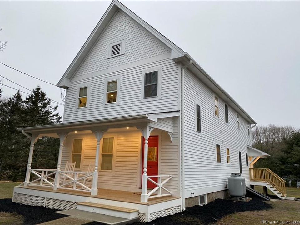 Beautiful well designed farmhouse renovation with attention to details. This turn of the century home has been transformed with modern amenities while keeping the vintage charm. Hardwood floors, stair banister/railings and hanging hallway light have been refurbished while everything else is new... kitchen, baths, windows, doors, siding, roof, mechanicals, electrical, plumbing, fireplace with shiplap, septic, etc... The working shed and post and beam barn weren't left out of this renovation... new electrical, doors, windows and exterior siding. The barn also features a town approved ranch style accessory apartment with 2brs, bath, kitchen, garage and side deck.
