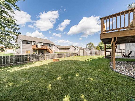 Good sized corner lot is conveniently located in north Sioux Falls in the Brandon School District with easy access in and around Sioux Falls. Enjoy the open main floor living area which includes a generous amount of natural light and vaulted ceilings throughout! The kitchen has lots of cabinets with breakfast bar and flows into the dining area with a slider to the back patio. The main floor is completed with 2 bedrooms and a full bath. The lower level has 2 additional bedrooms, large family room that is very open and offers garden view windows. The lower level bathroom is beautifully finished! Want even more?! Backyard is fully fenced and includes a shed for all the yard equipment with a connected dog kennel. Schedule your showing today, this one will go fast!