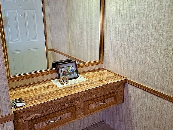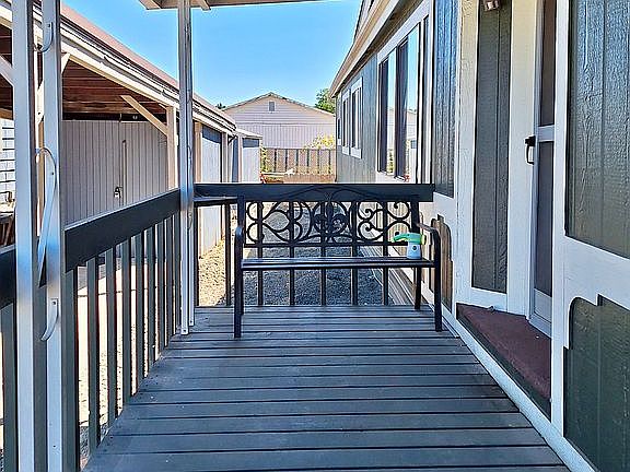 River Valley Homes has a new listing in a desirable 55 + park in Sutherlin Oregon. The parks clubhouse offers an outdoor pool, onsite manager and Maintenance support. If space is what you are looking for then take a look at this 3bdrm 2bth, 1783 sq ft Marlette home. The home is roomy and has lots of storage space. The split floor plan makes privacy easy for guests and hobbies. There are pretty oak cabinets throughout with deep shelves. The kitchen area is large with a half circle counter for extra work space. The dining area has a lovely chandelier light that makes an inviting bright addition to the central space of the home. The large master bdrm has ample closet space and nice lighting. Outside you will find a level fenced yard and two out-buildings. One has a skylight and wide doors and would make a nice shop. Two covered decks and a walk ramp makes easy access to the home. There is room for two vehicles. The kitchen appliances and washer/dryer are included in the sale.This is shown by appointment only.