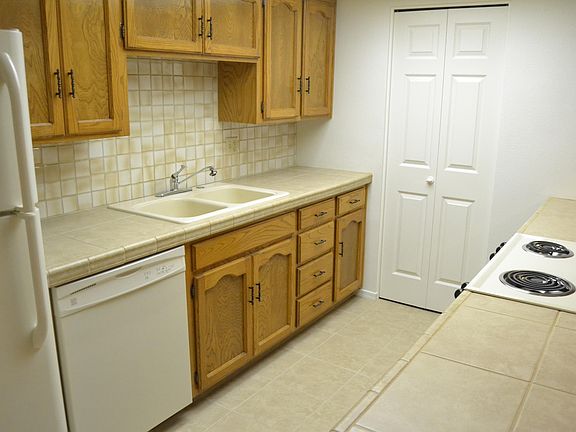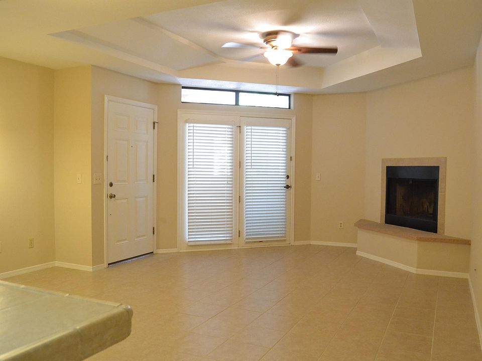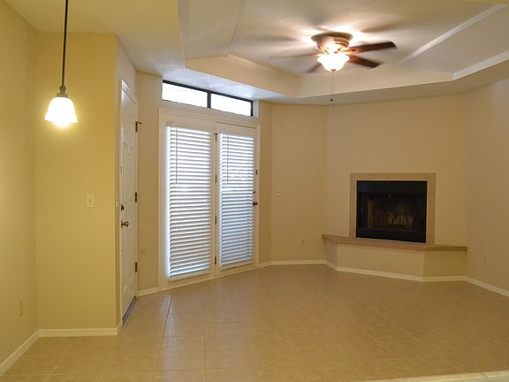 Absolutely spotless and immaculate unit with newer interior paint, tile kitchen counter tops, appliances, light fixtures, ceiling fans, towel bars, shower door, shower heads, flooring, and flag stone fire place hearth. This is a ground floor unit with all windows facing east, so the AC and summer electric bills will be lower than the upstairs units and units with windows getting the direct afternoon sun. The complex features a beautiful community rec room, racquet ball court, exercise room, and a community pool and spa area that rivals a country club or resort.