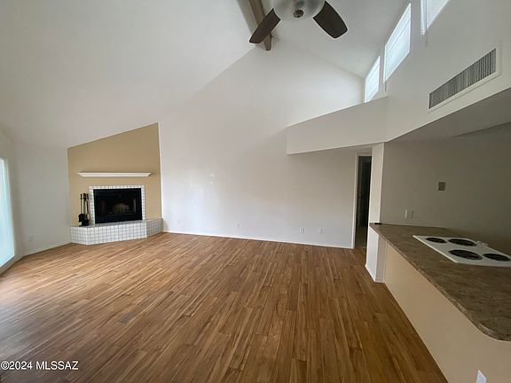Great, upstairs 2 BR/1 BA condo for sale. Unit is all electric, has a remodeled bathroom, a fireplace and includes a stove, refrigerator, dishwasher, washer & dryer. Condo also has a balcony, AC & a reserved parking space. Complex boasts large community pool/spa, exercise room with new equipment & a club house. Your monthly HOA fee includes water, sewer and trash service! Next to the Rillito River Walk, 5 miles from the U of A campus and close to the Tucson Mall and surrounding retail shops and restaurants.
