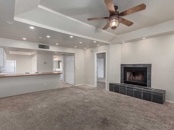 Very charming first floor condo available in desirable Casitas Real. Superb north Tucson location, near shopping, restaurants and the Rillito River with easy access to the River Walk. Inviting interior offers a desirable open floor-plan with 1 bedroom and 1 full bathroom. Spacious living area is enhanced with beautifully tiled fireplace. Kitchen is complete with crisp white cabinetry, coordinating white appliances, gorgeous tile counter-tops and a breakfast bar. Tile flooring in all of the right places. Walk in closet, private laundry and french doors leading to the secluded covered patio. Amazing community offers amenities including a sparking pool and spa, a clubhouse, athletic facilities and more. This gem is available at an excellent value and will sell fast. Hurry and see it today.