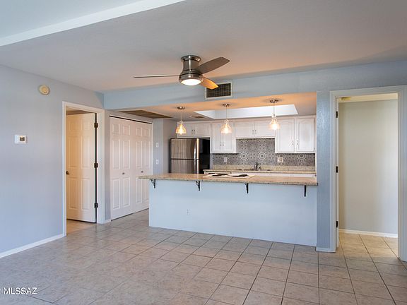Range priced $225,000.to $240,000. Refreshed /remodeled 2 Bedroom/2 Bath. NEW A/C April 2022. New Water Heater 2021Pop Corn ceilings removed. Newer Fans and light fixtures. Refrigerator 3 years old. Completely painted inside .Newer back splash. Fireplace newly tiled. Exhaust Dryer duct work cleaned 2022. Washer/Dryer conveyed in ''as is'' condition. Could be two primary suites. Main suite has double closets, dual sinks, small patio with storage room. Storage room new fireproof door.Kitchen has nice size pantry. French doors in Living Room out to patio area. Amenities include: Heated pool, Spa, Club House with Gym, Sauna and locker room with restrooms. Walk to Sunday Farmers Market at the Rillito Park and the Loop. Great location to UofA, Banner Hospital, shopping and Restaurants.