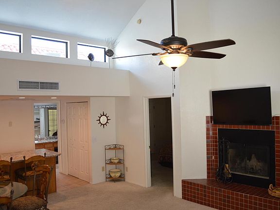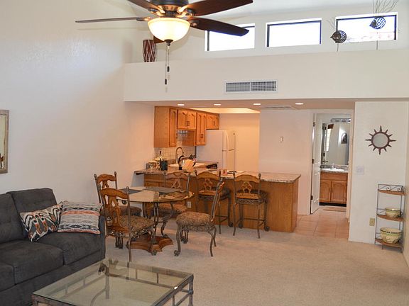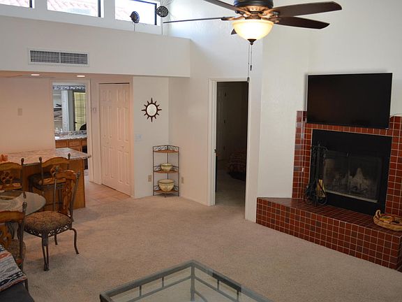Spacious yet cozy, upstairs condo on River rd features upgrades in the kitchen, fireplace, balcony, vaulted ceilings, community pool, spa, exeercise room, club house, and is within walking distance to the Rillito River walk/bike path. Unit comes fully furnished.