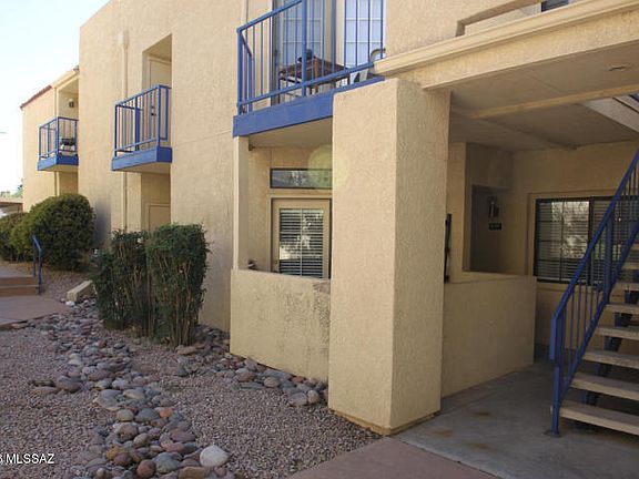 Luxury Condo updated to include granite in kitchen, tile back splash, wood floors in living areas and wood burning fireplace. Newer HVAC. Great location and close to U of A, Restaurants, Shopping and the Rillito River Walk/Park. Complex features include pool, spa, racquetball court and work out room with sauna