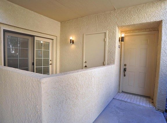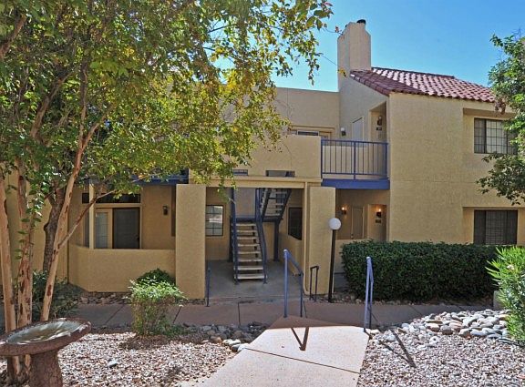 First floor condo move-in ready! Unit has a large master suite and a walk-in closet. High ceilings, ceramic tiled floors and new carpet in bedroom. Nice private covered patio to enjoy also features a storage closet. Desirable location! Close to the UofA, Tucson and La Encantada Malls, lots of dining, health facilities and easy access to the River Walk. Community offers a heated pool and spa plus an exercise facility.