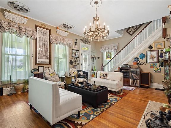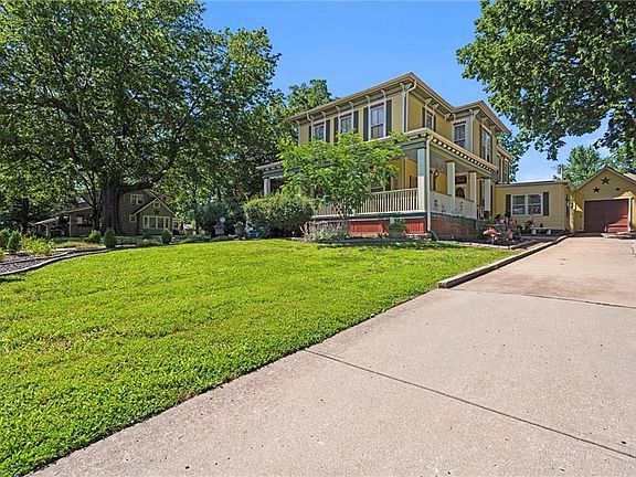 Enjoy your grand entrance back to another time- up the brand-new steps from the street to the sidewalk, of this huge city block-to-block property, enhancing the curb appeal from the second you engage! Then, as you begin your journey through this stunning Italianate Victorian home from the late 1890s, you see how it has been meticulously preserved to maintain its historic charm while thoughtfully updated w/ the modern conveniences of today’s world. This expansive property features so much space....5 Bedrooms, 3 Full Bathrooms & 2 Half Baths! Plus two fireplaces, gorgeous hardwood floors, & the home received a full exterior coat of paint in 2021. The downstairs windows are framed with elegantly bloomed valances, & chandeliers adorn almost every room. The master bath, & guest bedroom’s bathroom have recently been renovated, as well as adding several new thermal windows to the lower level of the home to help w/ energy efficiency & comfort. Other important updates to the home have included new stairs leading to the basement & 1 new AC unit in 2023. The backyard features a fantastic swing set, 2 raised garden beds, a fire pit, & a lovely gazebo for gatherings w/ friends &/or family. There is also a 14x40 studded & partially separated Shed/Out-Building that could serve as an art studio, workshop, or potential income-producing rental space, once completed. The covered deck wraps around the house for those quiet morning coffees, & you can enjoy your afternoon tea next to the fountain in your privately treed patio area. While you are outside enjoying your ½ acre+ property, be sure to stop & smell all the beautiful perennial flowers that have been planted for years of enjoyment! All appliances stay w/ the sale - including Fridge, Washer & Dryer, Deep Freeze (Guaranteed Foods Upright), & Dry Sauna that is in the basement!! Location on this home is nothing to blink about either- Close proximity to the Public Library, Schools, & of course the Harrisonville Historic Square!