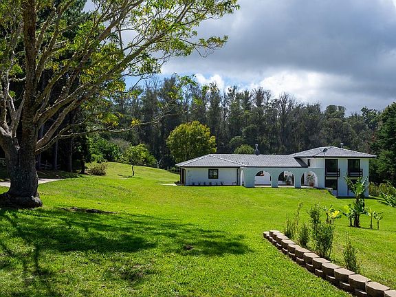 Nestled in the embrace of the fragrant Eucalyptus Waihou Spring Forest Reserve, this extraordinary abode offers the epitome of privacy and tranquility. Embodying the spirit of Modern Farm House architecture, this home draws inspiration from Maui's unique climate and style, creating a harmonious blend of contemporary design and natural beauty. Sprawling across nearly 2600 square feet and ensconced within a generous expanse of 2 acres, this masterpiece boasts an impressive 5 bedrooms and 3.5 bathrooms. The tri-split level layout, a hallmark of ingenuity, provides an ideal setting for harmonious living. The open concept design seamlessly flows, inviting gatherings and fostering connections. Step inside and be captivated by the classic forever-wood-like flooring, a perfect complement to the clean palette of whites, grays, and blacks that grace the interiors. The allure of white shiplap detailing creates a tactile delight, adding texture to the 2 chic fireplaces that serve as focal points of elegance. The kitchen, adorned with natural granite slabs, is a culinary haven where meal and party endeavors are transformed into art. This home is equipped with a rare, house generator with an automatic transfer switch, 120-gallon water heater and a surround-sound system on the main floor, catering to modern comfort and entertainment. A symphony of colors and scents awaits outdoors, as mature Hawaiian tropicals, including Birds of Paradise, Gingers, and King Protea, create a vibrant canvas against the backdrop of lush greenery. Positioned perfectly in a sunny park-like setting, surrounded by beautiful trees, ensuring a connection to the land. The tri-split level design is a boon for large families seeking individual sanctuaries, making coexistence a seamless and harmonious experience including the ability to build a barn. Just a mere 11 minute journey will transport you to the quaint town of Makawao, where sumptuous eateries and creative shopping experiences converge. The nearby schools and abundant hiking trails promise a lifestyle brimming with possibilities. Immerse yourself in the luxury of 4 generous lanais, each an oasis of relaxation and contemplation. Cultivate your own vegetable garden, and delight in the presence of adorable goats who share in the enchantment of this retreat. An upscale chicken house stands ready to provide you with farm-fresh eggs, a testament to the self-sufficiency this home affords.