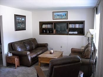 Ranch HomeThis cozy 3 bedroom, 1 bath, 1 car garage ranch home is located in a quiet friendly neighborhood. There are 2 parks with pools and a splash park nearby. This home is located on a corner lot offering lots of room for parking and a 3 car driveway great for RV parking. The cement patios are shaded by two large black walnut trees and has a beautiful mountain view. The backyard is fully fenced with a dog-run