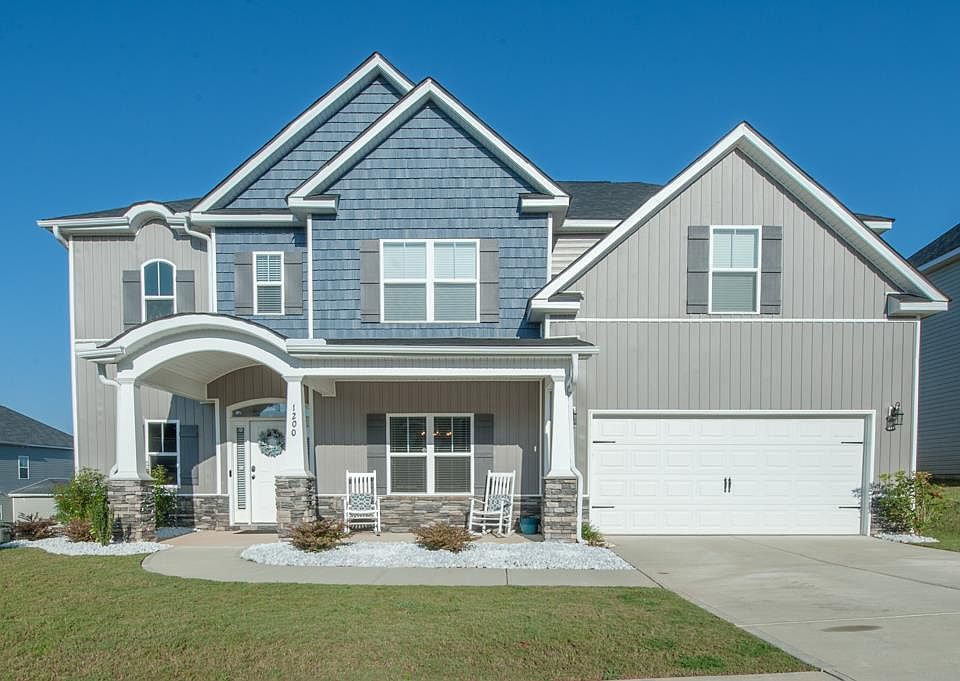 Only 4 miles to Fort Gordon's gate 2 & easy drive to downtown! Fantastic 5 bedroom 3 baths! Rocking chair front porch welcomes guests! Gorgeous hardwood floors! Amazing kitchen w/huge island/breakfast bar, large sink, pots/pans drawers, built in microwave, silent dishwasher, gas stove top & large pantry opens up to both keeping room with coffered ceiling & large living room with fireplace! Awesome dining room w/wainscoting & nice ceiling treatment! Spare bedroom & full bath w/upgraded tile floor on main level! Owners suite w/tray ceiling & 2 walk in closets...1 is connected to laundry rm (laundry also accessible from hall)! Plus double sink vanity, tile floor, upgraded tile shower, separate tub, linen closet& water closet! 3 additional spare bedrooms & full bath w/double sink vanity & upgraded tile floor! Covered patio! Full sprinkler! Built in sound system & wiring to back patio! 2 zone heat/air! Two 50 gallon hot water heaters! 2 inch blinds! Theatre equipment & sectional negotiable!