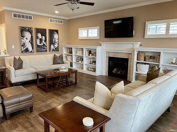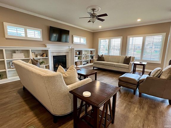 Here it is! Finally, the perfect lake property, with almost 3300 SF, large grassy lawn, tons of parking and awesome water views! Located on Colonial Cove, Lake Manitou, this has the best of both worlds; calm water and low assessed property taxes, while only a short 100 yards to the main lake. Built in 2008, this 4BR/3 full bath home is immaculate with adorable decor and move-in ready condition. Open great room has gas log fireplace and huge kitchen with SS appliances, custom white cabinetry, Corian countertops and pantry closet. Dining area with plantation shutters overlooks the lake and covered porch for grilling and outdoor entertaining. Upper-level primary bedroom suite is pure WOW- bedroom has large area perfect for home office or reading space with a view; gigantic bathroom with Jacuzzi tub, walk-in shower, double vanity sinks and incredible walk-in closet; and patio doors to the top-level composite deck with exterior staircase that can’t be beat! Two additional bedrooms with accent, trim walls and vaulted ceilings along with shared, full hall bath complete the upstairs. Perhaps the favorite room in the house, the game/media room at 600SF is just fantastic! Custom, built-in double bunks provide additional sleeping for 8 and a cozy spot for lounging and watching TV (and the bar stays!). Huge main-floor laundry room with utility sink and included washer/dryer and full main floor bath with walk-in shower complete the interior. Two car attached garage and 60’ of water frontage with two (new) aluminum docks. Plenty of room to spread out and enjoy lake life to its fullest! Check it out!