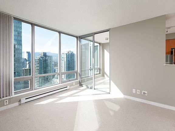 This listing is presented by Birds Nest Properties. Residences on Georgia 1200 W Georgia St, Vancouver 24th Floor Condo 1 Bedroom 1 Bathroom 1 Parking Space 1 Storage Locker 601 sq ft Unfurnished Open-Concept In-Suite Laundry Views Great Location Steps to SkyTrain Pets may be considered. Welcome home to Residences on Georgia, situated in the heart of Coal Harbour. This condo boasts a unique floor plan with soaring over-height ceilings and floor-to-ceiling windows that flood the space with natural light and fresh air. Enjoy sun-drenched days while overlooking picturesque views of Coal Harbour and the North Shore Mountains. The gourmet kitchen is thoughtfully designed with ample cabinetry and counter space, granite countertops, and modern appliances, perfect for preparing a delicious dinner. Residents enjoy premium amenities, including concierge service and a fitness centre. Located in the heart of Downtown's Coal Harbour, this condo is surrounded by beautiful parks and waterfront views. Start your day with a coffee from Paul Restaurant Cafe and Bakery before enjoying a scenic stroll along the Coal Harbour Seawall, where you'll be treated to breathtaking views of Vancouver Harbour. Relax on one of the benches lining the tree-lined path, or continue your stroll through the lush serenity of Coal Harbour Seaside Park. For everyday essentials, Urban Fare grocery store is located just around the corner. For public transportation, Waterfront Station is a transit hub where the SkyTrain, SeaBus, can be found for access to Greater Vancouver and the North Shore. Please note: Leases are a minimum of a one-year lease term. Strata corporations may charge move-in/move-out fees, which are the direct responsibility of the tenant. Minimum 1yr lease required. Tenants pay for all utilities. No smoking.