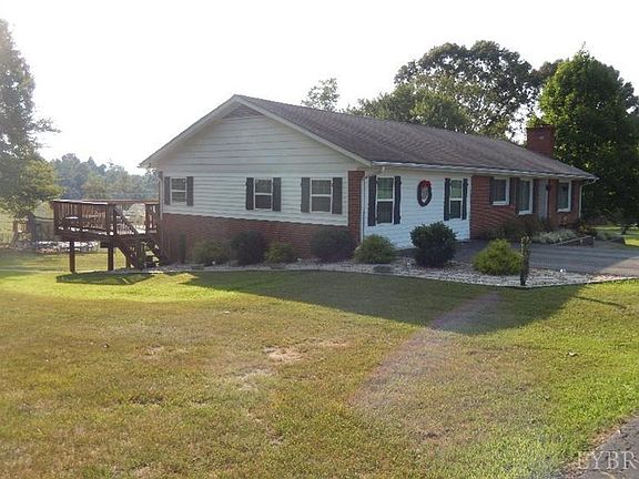 Just REDUCED, this beautiful brick ranch, (quick commute to Lynchburg, LU or Roanoke), exquisite new master suite you have a see to believe ~ this is a ranch like no other. With over 2,500 sq. ft., hardwoods, newly updated kitchen with granite, stainless steel appliances, and open to the main level vaulted living room with fireplace. The carport has been graciously remodeled into a private master suite with fireplace, vaulted ceilings, pampering master bath with whirlpool tub, double vanity, huge tile shower, and master bath with elegant chandelier. Main level laundry and utility room just off the kitchen leads to fabulous deck overlooking the lush backyard and mountain views. Two other bedrooms on main level and full bath. Terrace level finished office and huge family room, bath, utility room, storage room, and hair salon. This lovely property also boasts huge detached garage, and plenty of parking with circular paved driveway. Call for a tour, you won't be disappointed!