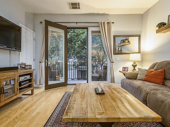 Welcome home to the sought after Upper Grand. This fabulous East facing 1 bed/ 1 bath features soaring 9.5' ceilings, hardwood floors throughout, garage parking and private terrace overlooking the beautifully landscaped courtyard. Chefs kitchen complete with granite counter and Stainless appliances opens to a sun-filled living area with sliding door to terrace. Roomy bedroom with walk-in-closet. Elevator concrete building offers residents lounge, common courtyard and gym. Central air, in-home washer/dryer and included garage parking complete this perfect home!