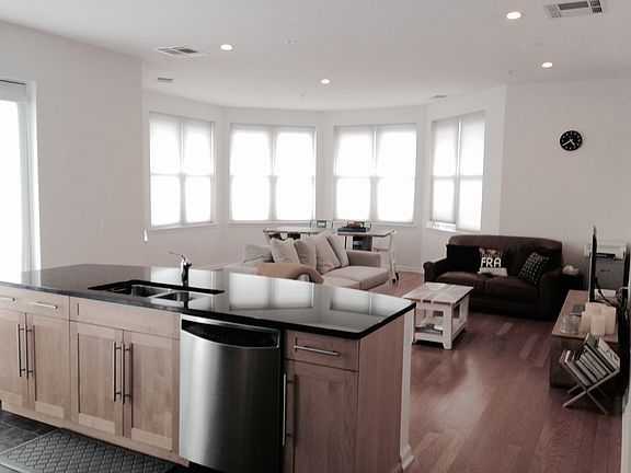 Stunning 2 Bedroom + 2 Bath corner unit in the Upper Grand, one of Hoboken's most sought after luxury communities. Featuring an abundance of natural light from 15 extra large windows with custom blinds, 9.5 ft high ceilings, recessed lighting throughout, hardwood floors, central AC, spacious open layout with a large bright dining area and Empire State Building views. Chef's kitchen that overlooks the living areas with SS appliances, 42" custom cabinets, granite countertops and a large island/breakfast bar. Master bedroom includes spacious WIC, ensuite bath with double vanities. Guest bath includes an extra large soaking tub plus new washer/dryer in unit. Building amenities include elevators, fully equipped fitness gym, newly renovated community room, common courtyard and your very own deeded undercover parking space. NYC bus stops, Shoprite supermarket, 24hr pharmacy, restaurants and cinemas all within short walking distances.15-20mins bus commute into NYC. Approx. 1300 Sq ft.