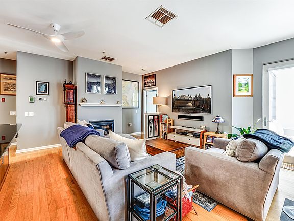 Welcome to this exquisite 2-bed 2-bath Upper Grand penthouse, in one of Hoboken's most desirable communities, near Trader Joes and Hoboken's newest park. This exclusive condo boasts an impressive 1120 sqft of thoughtfully designed updates & smart home technology, featuring Hunter Douglas powered blinds, a NEST thermostat & Haiku and Hunter ceiling fans. Upon entering you'll notice the abundance of natural light complimenting the hardwood floors. The modern chef's kitchen features stainless steel appliances, a Culligan reverse osmosis drinking water system & a sizable 5-seat peninsula, harmoniously connecting the kitchen to the living area. The open concept living room features a gas fireplace & two balconies! Make your way to the primary, large enough for a king bed. The primary ensuite features a double vanity, walk-in shower & custom closet. The second bedroom also fits a king & the second bathroom includes a soaking tub. Amenities include a private garage deeded parking spot, courtyard, gym and a community room which is available to host your private events! This unique penthouse condo is seldom available. Don't miss out!