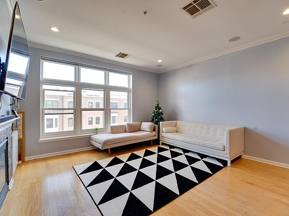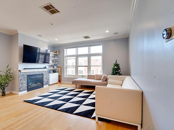Situated in Hoboken's stylish Upper Grand, this 2 bedroom 2 full bath top floor residence provides modern conveniences and full amenities. Attention to detail is found throughout the 1072 square ft of expansive living space featuring, hardwood floors, 9.5ft ceilings, gas fireplace, skylight, oversized new windows, custom window treatments, recessed lighting and crown molding. Enjoy the chefs kitchen with sleek granite counters, custom cabinetry and stainless steel appliances and finishes. Master suite includes a large walk-in closet and private bath with double vanity. The second bedroom with walk-in closet is situated directly across from the additional full bath. Separate wash/dry closet, new water heater, central air conditioning and extra large deeded parking space round out the features of this home. The Upper Grand offers full amenities including exercise room, residence lounge, common garden and on-site covered garage. This community is conveniently situated within a few short blocks to restaurants, grocery stores, shopping, bus and NY Waterway Ferry transportation directly to NYC.