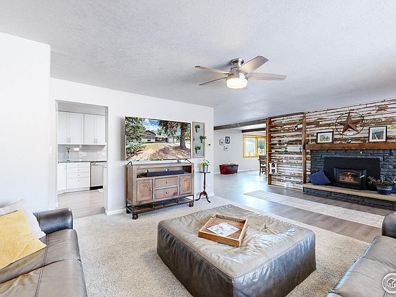 Rare find! Wonderful country home with 1000+ SF insulated shop. This beautifully remodeled property offers the perfect blend of modern convenience and charm. Nestled on a sprawling .86-acre lot, this residence features 4 spacious bedrooms and 2 bathrooms. Tucked away down a private drive, along an open meadow, gorgeous evergreens welcome you in the front. Step inside to discover a warm and inviting living room with a wood fireplace, perfect for cozy evenings. Unique built-in pieces throughout the home, paired with reclaimed barnwood accents, add character and a touch of country elegance. The kitchen is a chef's delight, boasting brand-new cabinets and appliances installed in 2022. A farmhouse sink adds a charming touch to this functional space. Continue on to the fully fenced backyard with motorized double swing gate, and find a massive backyard that provides space for RV or Boat Parking. The backyard also provides an insulated shop. Completely finished, inside and out, the shop boasts a 3/4 bathroom with walk-in shower, water heater, 220 power, additional slop sink, and loft/office space. Current built-in table saw and chop saw will have option to stay. The oversized garage door is equipped with myQ smart security technology including automatic deadbolt, motion detection, lighting, and real-time cameras. The home itself has an attached 2-car garage with both doors also equipped with myQ package. Radon mitigation system installed. The yard has a chicken coop, a separate covered turkey run, and both apple and apricot trees. Behind shop is a matching Tuff Shed with concrete foundation and padlock. Enjoy the outdoors from your covered front porch or covered backyard deck. It provides plenty of space for entertaining and beautiful views of the Colorado sky. Home located in North Fort Collins only 10 minutes from Downtown/Old Town! Don't miss out on this unique opportunity to own a beautifully updated home on a generous parcel of land. NO HOA!