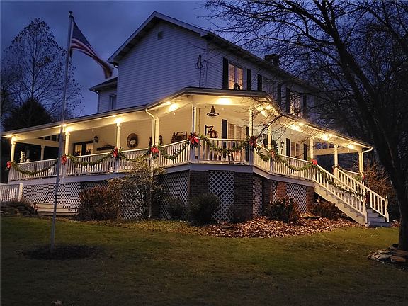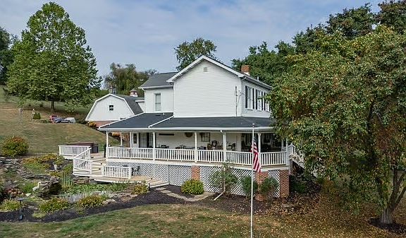 Charming Farmhouse Retreat, In-Law Suite, Garage & Workshop on 1.45 Acres. Welcome! 3bed/2.5 baths which includes a primary suite. Soaring high ceilings, large rooms & oversized windows fill the home with natural light & showcase the serene views. Oversized, updated eat-in kitchen, complete w/tiered island & seating, ample cabinetry & appliances. Breakfast nook opens to the massive, wrap around porch. Separate dining room, ideal for hosting family dinners/holidays. Convenient main floor laundry room, a rear-entry mudroom, driveway offering ample parking. Property is highlighted with the detached garage featuring a versatile main level in-law suite/open floor plan + a massive 29x27 workshop above-perfect for hobbies, storage, or potential studio space. Relax on the deck overlooking the large pond, surrounded by mature landscaping, fruit trees/peaceful views. This rare gem offers space, functionality & charm in an unforgettable setting. Conveniently located to Rt 30, Turnpike & schools.
