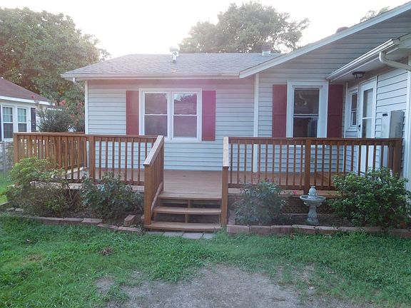 This home is move in ready with many updates to include: laminate flooring through out the house except the bathrooms, kitchen, and middle bedroom; a Rinnai Tankless Water Heater, vinyl replacement windows, and the Roof(new in 2010). Most of the interior painted and deck stained in August of 2019. Wonderful fenced in back yard(playground equipment doesn't stay). Wonderful spacious master bedroom with large walk in closet and abundant storage space throughout the house. The large storage building is just a few years old. This is located on a corner lot across the street from the city community center.