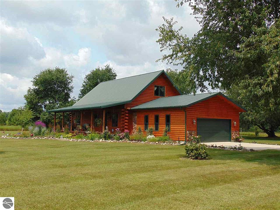 FOR THE PRIVILEGED, A HOME THAT IS WORTH YOUR VIEWING. BEAUTIFUL LOG HOME WITH ALL THE DESIRABLE FEATURES. OPEN LIVING, KITCHEN, AND DINING AREA. HIGH VAULTED CEILING, OPEN STAIRWAY LEADING TO THE LOFT THAT OVER LOOKS THE LOWER LEVEL, UPPER BEDROOM & BATH, MAIN FLOOR WITH BEDROOM & BATH, UTILITY ROOM. PATIO DOORS OFF DINING AREA LEADING TO A COVERED DECK. ATTACHED GARAGE, ADDITIONAL NEWER GARAGE WITH 3 OVERHEAD DOORS FOR EXTRA VEHICLES & WORKSHOP PLUS ADDITIONAL BARN. ALL ON 2 LANDSCAPED ACRES. IT'S PICTURE PERFECT!