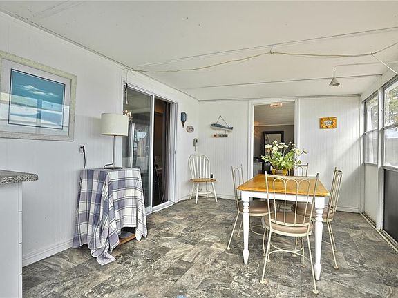 This lakeside home can be lived in year round or enjoyed as a weekend getaway. This 3 bedroom property has received several updates, including a beautiful open concept eat-in kitchen/living room with vaulted ceiling and recessed lighting. Relax on the large patio, listening to the waves lapping the shore as the sun sets over the lake. Don't miss out on this wonderful lakefront property! Room sizes approximate.