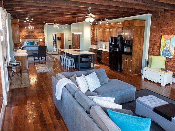 Available furnished or unfurnished! Historic apartment with dedicated parking space on the corner of 12th and Main, across from the Community Market, it is within walking distance to everything that is happening downtown, all the restaurants, shops, offices and services but its dedicated parking space and back entrance make it very convenient on those days you don't want to park and walk for blocks. The interior finishes, brick walls, heartwood pine floors, exposed beams, vaulted ceiling, and large historic windows (with interior storms for better insulation) all beautifully restored, provide a unique showplace of the building's historic charm, 1,218 sq ft Open Loft Internet, water and trash included Heart Pine Floors Brick Walls Exposed Beams Vaulted Ceiling Large Historic Windows with Interior Storm Windows Custom Blinds Ceiling Fans Washer and Dryer in Unit Dedicated private parking space Front and Back Entrances Currently furnished but can be unfurnished Washer and Dryer in Unit Dedicated private parking space Water, sewer and trash included.