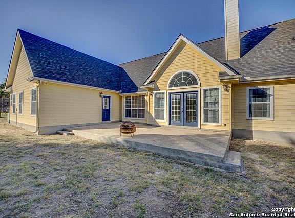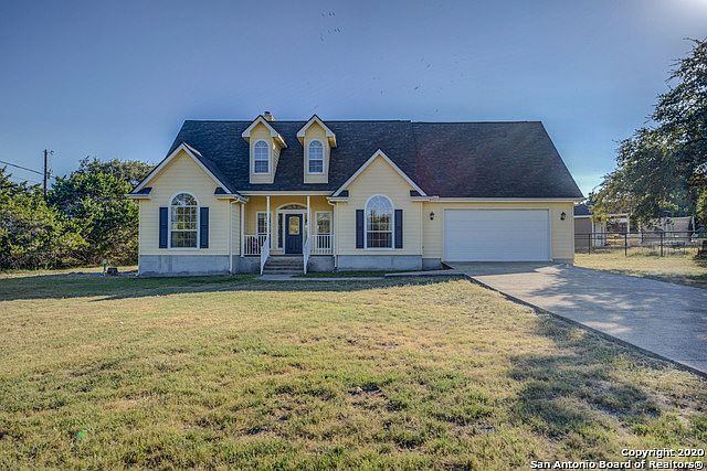 This beautiful custom home sits on 1/2 acre lot and is move-in ready! Inside features all bedrooms on main level with a bonus room upstairs (game room, office, guest bedroom etc.). Open kitchen/living area, custom cabinets, breakfast bar for extra seating and granite counters. Master suite includes double vanity, separate shower and garden tub, plus walk in closet. Outside features double pane windows, gutters, large back patio and a covered front porch. This neighborhood has Guadalupe River Park/Access as well as a community pool and playscape, and a separate area with pavilion, bbq grill, sport court, soccer field, jogging/walking trail and playground. Come see what all this house and neighborhood has to offer!