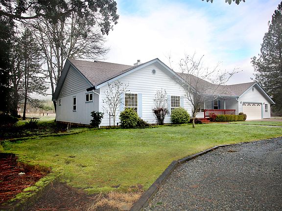 Discover a gem at the end of Meadow View! Gated entry, thru the trees the level parcel opens up to beautiful views of valley & mountains. Home also offers vistas from living areas & spacious covered deck. Charming living room w/woodstove, vaulted ceiling, open to kitchen & dining. Kitchen boasts ample storage, leathered granite countertops, SS appliances, convection oven & microwave, induction cooktop, wine cooler, large walk-in pantry, breakfast nook. Primary suite features vaulted ceiling, dual sinks, jetted tub, separate shower. Guest bedroom, 3rd bedroom/office, & laundry room w/cabinets enhance versatility. Silver maple hardwood flooring graces living areas. Storage solutions abound! Central vacuum. Attached garage 568sf. Detached 768sf workshop/garage w/full bath & 432sf craft room upstairs w/decks, views, storage, heating & A/C, half-bath. Newer gutters w/leaf guards. Property fully fenced. Great producing well (approx. 14 gpm). Natural beauty combined with comfort - a must see