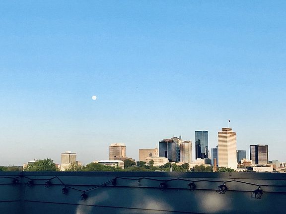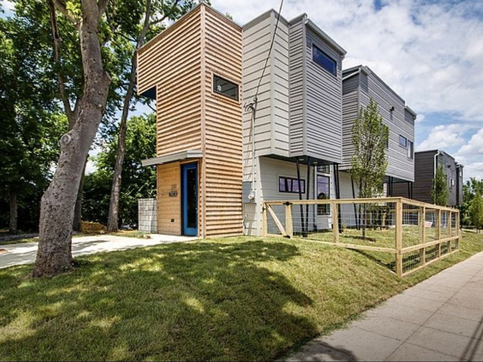 THIS HOME HAS TONS OF WOW FACTORS Stained Concrete & Real Wood Flooring - well appointed living space - lush kitchen cabinets and counters - walk thru bath for guest rooms - fresh paint - lots of windows and natural light - outdoor entertainment on roof top patio & first level patio - fenced yard space - gorgeous city views - all SS appliances remain. Driveway Parking Pad for 2 vehicles