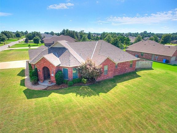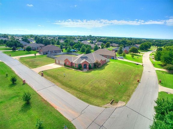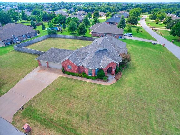 Hello space! Give me a Soccer goal, give me a basketball goal, and give me a pool! True custom you will not see on every corner! Corner lot .58 of an acre, fully fenced for your privacy, 3 beds, 2.1 baths, study, formal dining, chef's delight kitchen, 3 car attached garage, sprinkler system, aerobic septic system, and an over sized back patio. Study is plenty big enough for a 4th bedroom. Newer items include: interior and exterior paint(2017), 3rd bay(2017), 2 car bay(2014), 2 outdoor ceiling fans(2017), kitchen faucet(2017), 3 dual flush toilets(2017), Jack and Jill faucets(2017), master bath faucets and closet chandeliers (2017), roof(2013), tile and grout professionally cleaned(2017) and designer hardware and switchplates throughout home(2017). 2710 sqft (mol). This home is offers an excellent, open concept perfect for entertaining. The kitchen is a Chef's dream! Edmond schools with bus transportation at your front door.