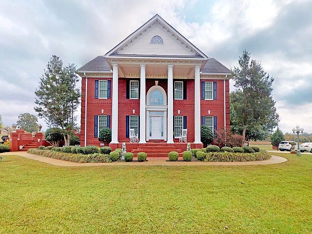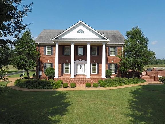Country Colonial Estate with 12.5 acres! This beautiful stately brick 4 Bedroom home sits in a pastoral setting with panoramic views of the surrounding countryside. Home has 2 road frontages with a connecting tree lined driveway. Massive colonial columns adorn both sides of the home. There is a formal dining room, eat-in kitchen, and large entertainment room with wet bar. All Bedrooms are on the 2nd Floor with a media room. 2 car attached garage plus additional 32x24 detached workshop. New HVAC unit. Lots of windows provide light and views of the property. This has all the Southern charm a home can offer. Call today.