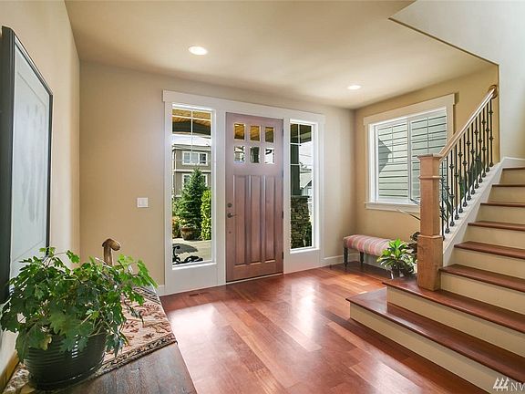 Lower Kennydale with views of Lake Washington! Great room plan with covered deck for year round entertaining. Cherry hardwoods flow through most of the home including stairs. Kitchen has extensive cabinets, warm granite counters, eating island, stainless steel appliances and a dumb waiter; perfect for hauling the groceries from the main level. Master bedroom features a cozy fireplace, 5 piece bath and walk-in closet. French doors open to the large den/office. Main level perfect for MIL suite.