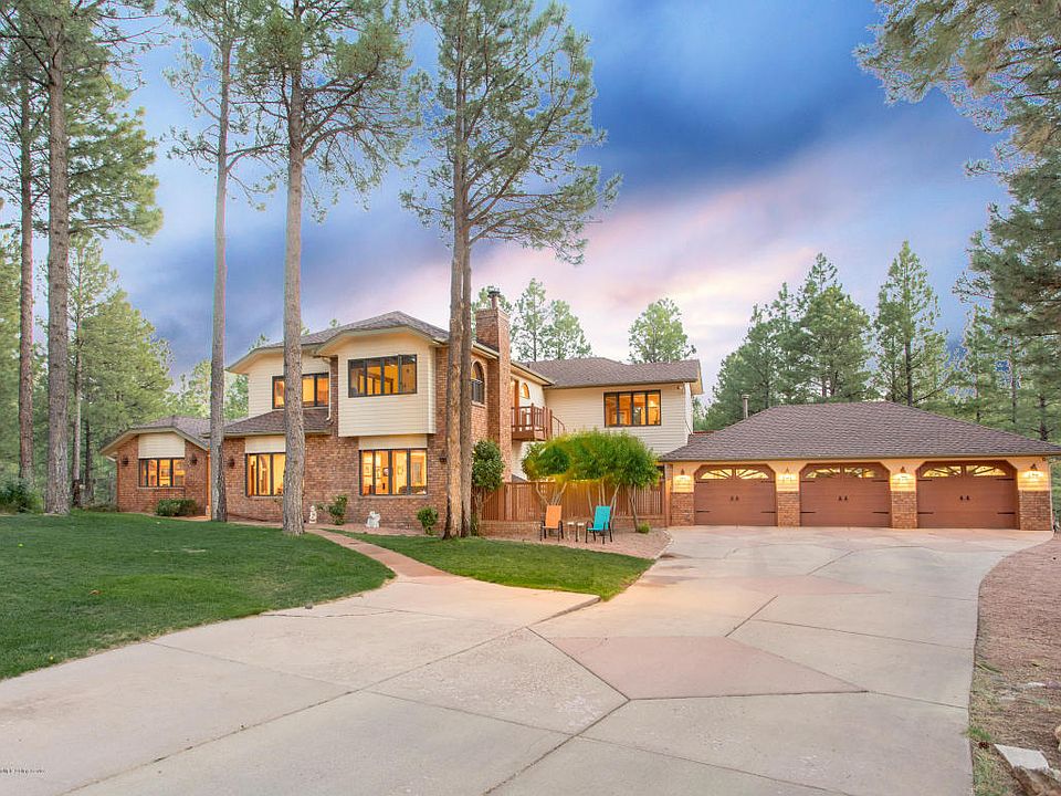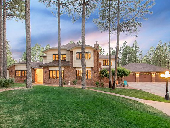 Luxury Mountain Living in Lake Side Acres. This stunning home is very private and sits on an expansive 2.11 acre lot nestled among mature Ponderosa Pines. Bright open living with amazing views from every room. The kitchen has beautiful new cabinets, granite countertops, stainless steel appliances, large kitchen island, large walk-in pantry and two spacious dining areas. Space abounds with the open floor plan including a large family room, formal living area with wet bar, and a private liabrary/office . All the bathrooms have travertine tile showers and floors and granite countertops. The Master Bedroom has a large bonus sitting area with fireplace and it's own large walk out deck. The large private decks in the back area are perfect for relaxing or entertaining.