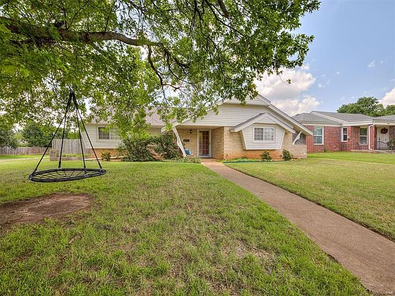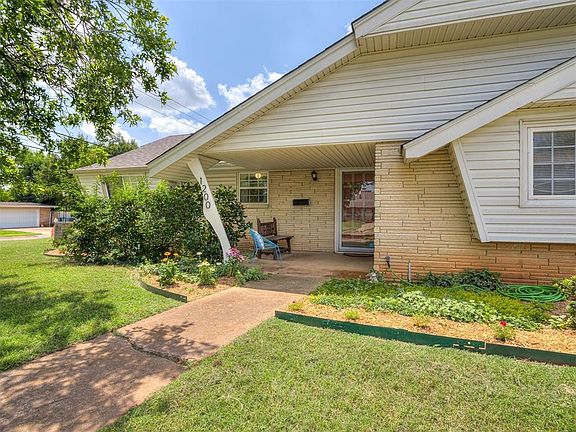 Perfectly situated on a spacious corner lot within the highly sought-after Nichols Hills Elementary School District. With details like stacked stone exterior, whimsical trim detail, and deep architectural windows you will be ready to write your own story within these walls! Greeted by the inviting covered front porch and welcomed into the original terrazzo tile entry way. This home has a lot to offer, including two generously sized living areas that can offer versatile use of the space to fit your lifestyle!