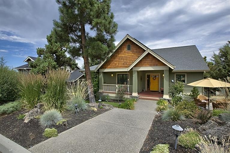 Contemporary Craftsman style home! Great Room with vaulted ceiling, gas fireplace, many windows to let in abundant light. Spacious Kitchen with Cherry cabinets, slab granite counters, hardwood floors, commercial 5-burner gas stove, custom lighting. French doors off Dining area with custom built-ins & wine refrigerator. Master Suite with vaulted ceiling & access to back deck. Master Bath with jetted tub, large walk-in tile shower, heated tile floor, walk-in closet with built-ins. Guest Suite & outdoor patio.