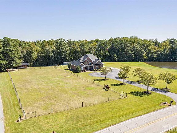 Welcome Home to a custom brick home with "endless possibilities" for equestrian, business owner, or the buyer looking for upscale living close to Raleigh. Enjoy the 3.5 acre serene setting with a pond view. Gorgeous inside and out with upgrades galore. Meticulously maintained, brand new roof w/40yr shingles, gutters (6in). Stable and large pasture for the horses. Large shop upgraded for all your DYI projects. Stone fireplace in family room, media room, custom kitchen overlooking family room.