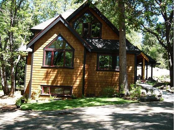 Single Family Home for sale by owner in Mount Shasta, CA 96067. A very custom Shingle home in a 3.4 acre wooded setting within walking distance to downtown. One of a kind front door built by owner/builder. Beautiful lighting fixtures inside and out. Family and dining area is vaulted with a great view of Mt. Shasta and features a stunning natural stone wood burning fireplace which heats the entire home all winter! The kitchen has high-end Stainless appliances, solid Granite counter tops, custom made Cherrywood cabinets; hand sanded/stained hardwood floors and a walk-in office pantry (including a refrigerator). Bathrooms are beautifully tiled and spacious. Windows are high-end Sierra Pacific, custom trimmed with Alder casing, sill and aprons. Master bedroom is vaulted and has 2 walk-in closets. Master bath has his/her separate vanities. House has an additional 12x12 unconditioned room below and lots of other storage areas throughout. Outside, there are numerous Native Dogwood, Oak and Cedar trees, moss rocks an