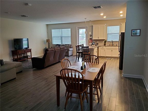 - Interior Features: Eating Space In Kitchen, High Ceiling(s), Open Floorplan, Stone Counters, Walk-In Closet(s), Solid Wood Cabinets, Thermostat, Kitchen/Family Room Combo, Living Room/Dining Room Combo, Solid Surface Counters, Window Treatments, In Wall Pest System, Tray Ceiling(s)