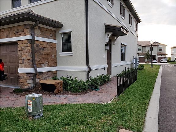It is a Nandina model built by Lennar in The Trails at the Vistas in Championsgate. This community is in its last phase and will be sold out soon. This Luxurious Townhome unit features 3 bedrooms and 2.5 baths with half bath located on first floor and 2 car garage for the toys. A Lanai is out back for Lounging and Grilling. Sidewalks throughout make it walkable distance to the private clubhouse and pool which features fitness area, sauna and golf simulator. The Omni and Championsgate Golf clubs are walkable distance or short drive in your golf cart. Tee off at one of two nationally recognized Greg Norman designed golf courses, 54 holes of golf total. Walking in to the foyer the first level is open concept which includes family living area, dining, office and kitchen. Upstairs has master bedroom, master bath and walk-in closet, 2 other bedrooms, and separate laundry. Located minutes from Walt Disney World, Disney Springs, Lake Buena Vista, International Drive and I-4 to take you to Sea World and Universal where you can play, eat and shop. HOA includes basic cable, internet, WI-FI, Valet trash service, Lawn Maintenance, Gated Entrances. Homeowner perks also include access to the Oasis Club Resort which offers pools, splash pad for the little ones, lazy river water slides, game room, tennis, and volleyball court, air conditioned cabanas and poolside Tiki Bar. Also includes fitness area, locker rooms, Golf Simulator, and Sauna. This club is located 2 miles from Townhome accessible by sidewalks or golf cart.