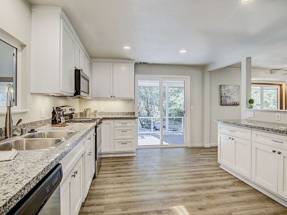 This beautifully remodeled home sits on over 1 acre surrounded by many trees. It blends original wood with modern amenities, and has lasting charm! Enjoy the spacious new kitchen featuring new cabinets, s/s appliances, granite counter tops and more! Additional updates include: new roof, remodeled bath, new windows throughout, and added cabinets, sink, and granite in indoor laundry room! Minutes to Hwy 50, yet tucked back off the road. Come and see if this could be your new home!