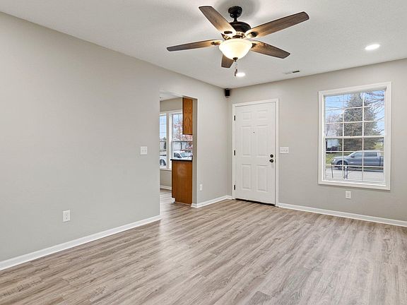 Discover the perfect blend of comfort and affordability in this charming 3-bedroom, 1-bathroom ranch home. This home has been thoughtfully updated with fresh paint, new flooring, sleek light fixtures and ceiling fans throughout. The owner's bedroom boasts double closets, and the hallway has its own set for added storage. The adorable bathroom is updated with a new vanity, sink and fixtures. In the spacious eat-in kitchen you will find stylish new glass tile backsplash, adding a touch of sophistication to the space. All of the major kitchen appliances are only 2 years old and stay with the home. Around the corner you will find cabinets and shelving that maximize organization and storage in the laundry room. Enjoy the convenience of an attached one-car garage and peace of mind that comes with a roof that's only 2 years old. A brand new April air system on the furnace ensures efficient heating and enhanced air quality. In the back yard you will find 2 nice size garden boxes in addition to the 12X10 shed to comfortably store all of your lawn and garden equipment.