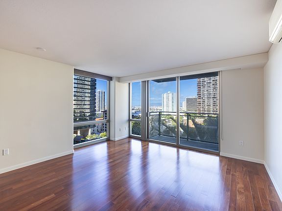 Well-kept newer condo (built in 2008) 2-bed, 1-bath, 1 large secured covered parking stall near the elevator (with 3 storage lockers). Enjoy from the lanai views of the Downtown skyline, Waianae sunset Modern residence featuring a gourmet kitchen with stainless steel Viking appliances and natural stone countertops, brand new Daikin split A/Cs in all rooms, top-of-the-line W/D, dual vanity sink, ample cabinetry/counter space, floor-to-ceiling shades. Amenities include: 24/7 state-of-the-art fitness center (with 2 showers), movie theater , recreation/party/music/yoga rooms, 4 EV charging stalls, heated infinity and family pool, whirlpool spa/Jacuzzi, children's jungle gym, bbq cabanas. Prefer one year lease.