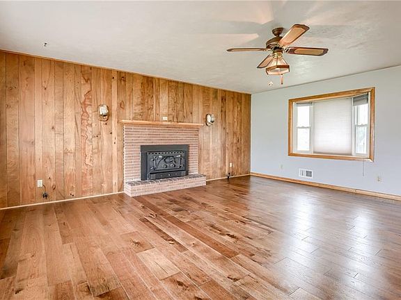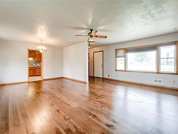 with Main Level Living. Spacious and Open Floor Plan! Lovely Hard Wood Floors Throughout! Great Room with Large Sunlight Windows & Brick Fireplace. Dining Room with Bay Window. Kitchen with tile floors, tile backsplash, tons of cabinets, good counterspace, and appliances. Master Bedroom with wood floors, fan, closet, and hosts a master bath with tile floor and shower. Good sized 2nd and 3rd bedrooms with wood floors, fans, closets, and laundry hookups if desired in 2nd bedroom closet. Full Bath with tile shower over tub, tile floor and vanity. Entry with coat closet, hallway with linen closet. Spacious and Open Full Basement with sump pump, walks up in the back, additional storage area. So many possibilities for the huge basement - additional bedrooms, rec room, more storage, man cave, game room, theatre area, etc. Incredible Opportunity to get your family into a wonderful Home, just add your personal touches! Convenient location near 7 hwy, shopping, dining, hardware store, parks, and amazing schools. Your HOME Awaits!