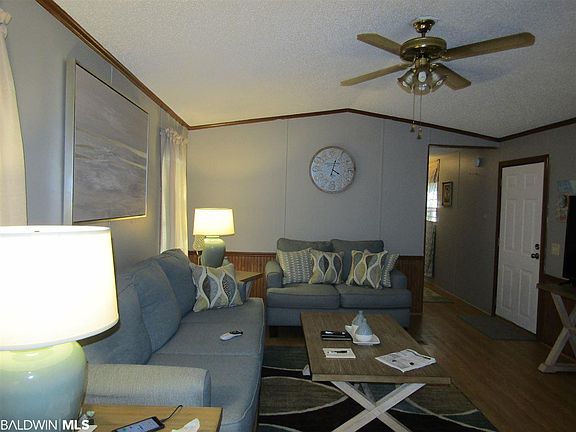 Very nice single wide in Spanish Cove. 3bed & 2Bath. Open kitchen, dining & living room. Split plan. Newer laminate floors. New high end washer & dryer. Sunroom & Shed. Fenced back yard. This also backs up to a farm so no back neighbors. Metal Roof was resealed this year. Spanish Cove amenities include year round pool, 2 Clubhouses, Fishing Pier, Tennis courts, & 24 hr security. Public boat ramp & pier up the road. Property AS IS WHERE IS