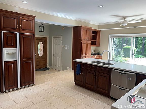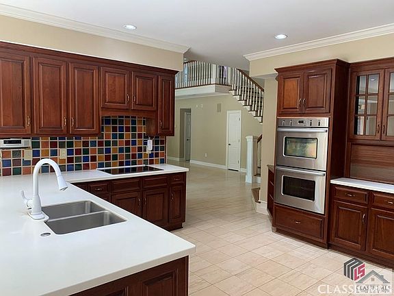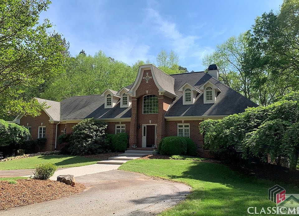 Private Retreat on the Apalachee River in Oconee County! The property includes a total of 10 acres with the house sitting on a 5-acre parcel and the additional 5 acre lot is included with the sale. The property offers an electronic gated entry with winding driveway, located in the cul-de-sac which offers tons of privacy and lots of river frontage. This home features 4 bedrooms, 5 bathrooms and 2 half baths and a possible huge fifth bedroom/bonus room. As you approach the property there is a circular drive giving access to the main entry. As you enter standing in a two-story foyer with a custom balcony that overlooks the large great room with a wall of arched glass windows and glass doors that offer a perfect view of the unique resort-like heated pool with hot tub, perfect for lounging with sections in the shade and sections in the sun as it winds its way similar to a lazy river under a covered portion of the home's roof with multiple balconies and viewing areas. In addition, this level offers a large guest suite or second master with private balcony and connecting to an office/den. Entering the home from the main garage level includes 2 story great room, large master suite on main level, spacious kitchen, eating area with glass sliders, custom tile, dining room, open and bright-very spacious with the focus on the pool, landscaping, and beautiful palm tree all in view. Additionally there is a staircase off of the kitchen leading to a large rec/media room, second laundry area, two additional bedrooms and two bathrooms with custom built-ins on this level. The third level offers an enormous bonus room or 5th bedroom currently used as an exercise room, with private bath and large cedar closet. This property also includes an additional custom brick detached 2-car garage with rear staircase leading to space above the garage finished out with drywall and carpet with its own breaker box ready for split system for HVAC. This space is ideal for guest suite, office, or even Air BnB. There is a spacious greenhouse, covered storage area and large planters/composting area, all connected to the detached garage. The setting is amazing with walking trails and custom plantings throughout the property with lots of Apalachee River frontage. Extras include: new carpet, new interior and exterior paint, new gutters, tile backsplash, custom cabinetry, travertine floors, hardwood floors, walk-in laundry room on main with half bath, additional half bath off great room, tall fencing, canned lighting, transoms, gated entrance, low maintenance custom landscaping with a variety of plants and trees, and more! This is a must see!